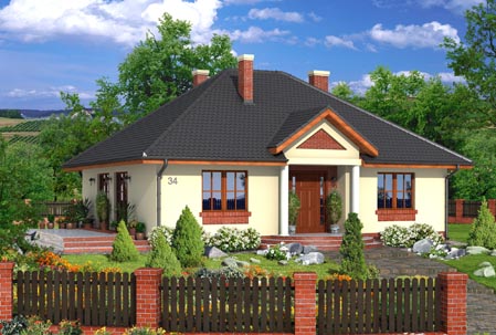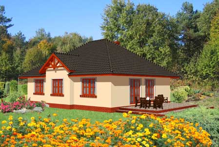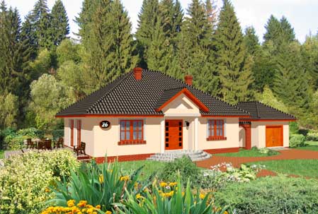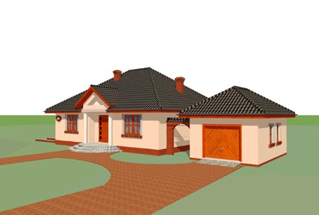 Budynek parterowy bez poddasza użytkowego. Aneks kuchenny w salonie. Kominek z możliwością odzysku ciepła.
