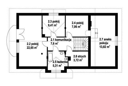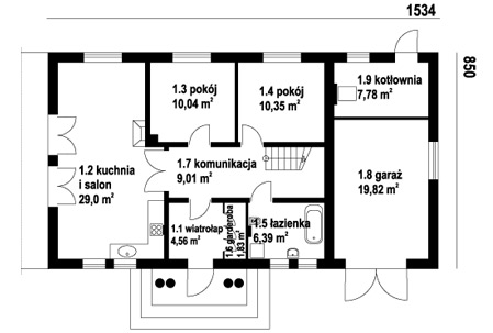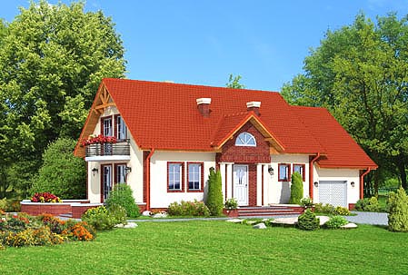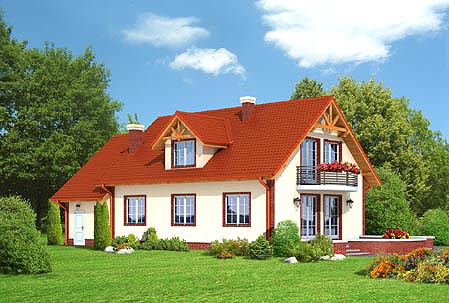Parterowy dom z poddaszem użytkowym, dwa pokoje dodatkowe na parterze.