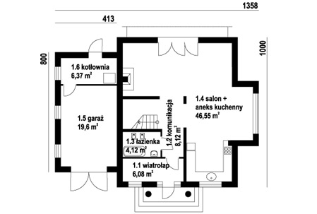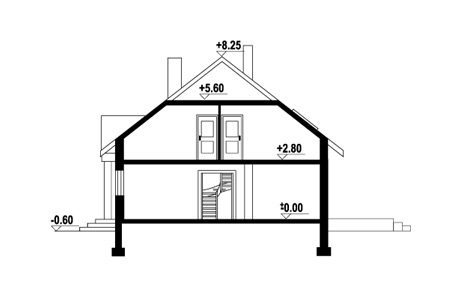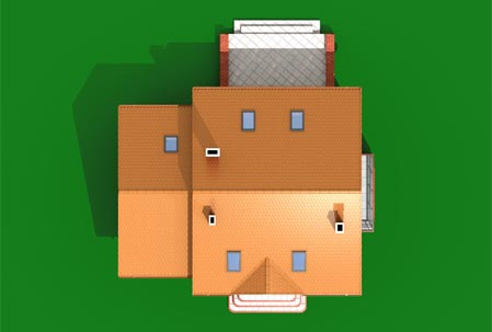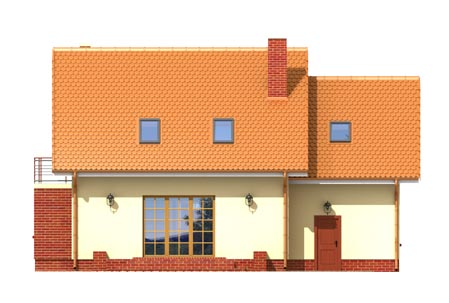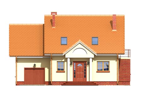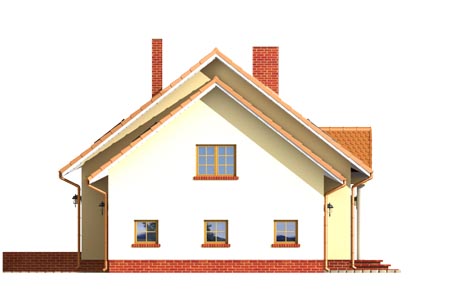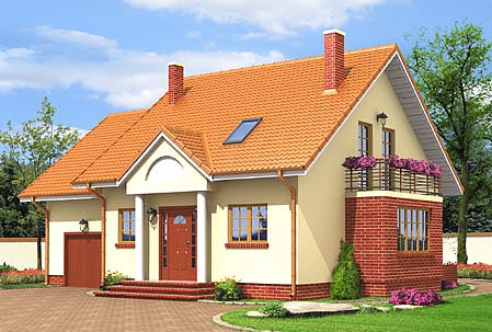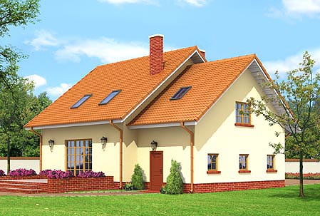 nieduży dom z dobudowanym garażem,na parterze część dzienna,na poddaszu trzy sypialnie,łazienka i strych