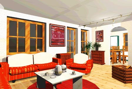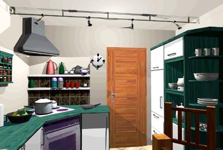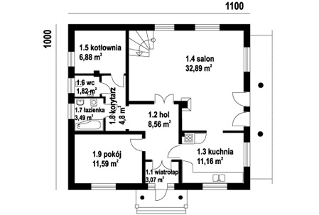 Kuchnia połączona z salonem, kominek z możliwością rozprowadzenia ciepła, drewniane schody z salonu na poddasze