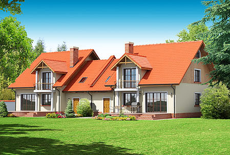 dwurodzinny dom przeznaczony do zabudowy bliźniaczej z możliwością wykorzystania do zabudowy szeregowej lub wolnostojącej