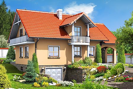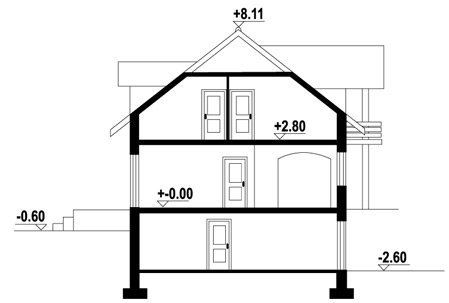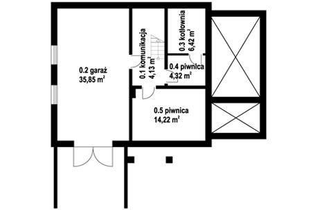 Budynek podpiwniczony, w piwnicach garaż. Na parterze część dzienna, na poddaszu cztery pokoje (sypialnie) i łazienka.